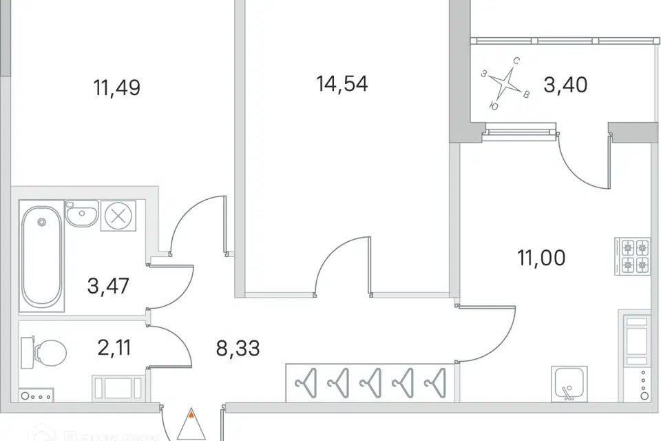 2-комн. кв., от 49.2 м², 1-23 этажи