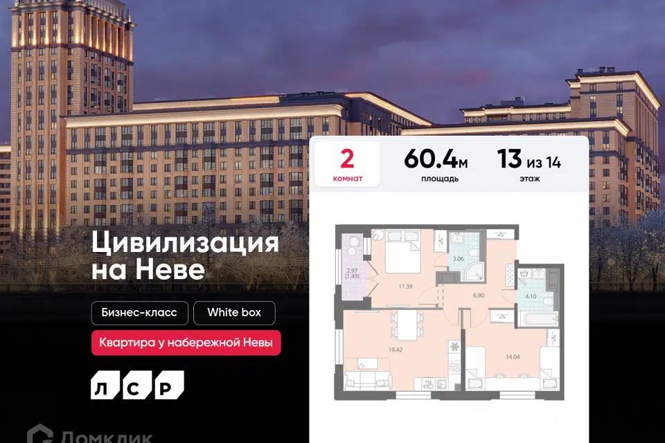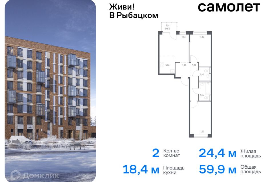 2-комн. кв., от 59.9 м², 11-13 этажи