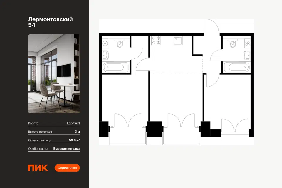2-комн. кв., от 64.3 м², 6-18 этажи