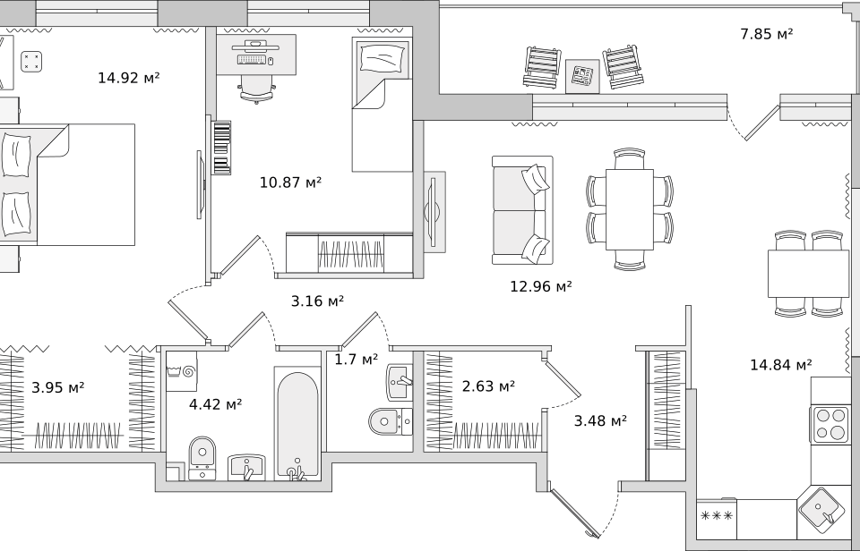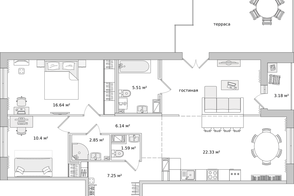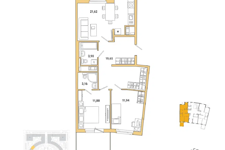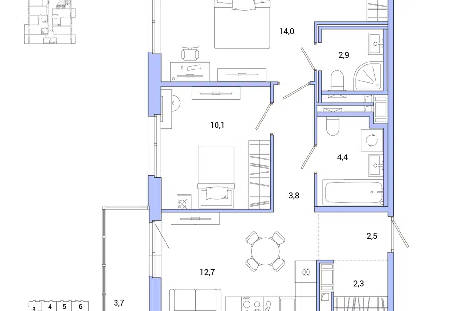 2-комн. кв., от 87.7 м², 12/14 этаж