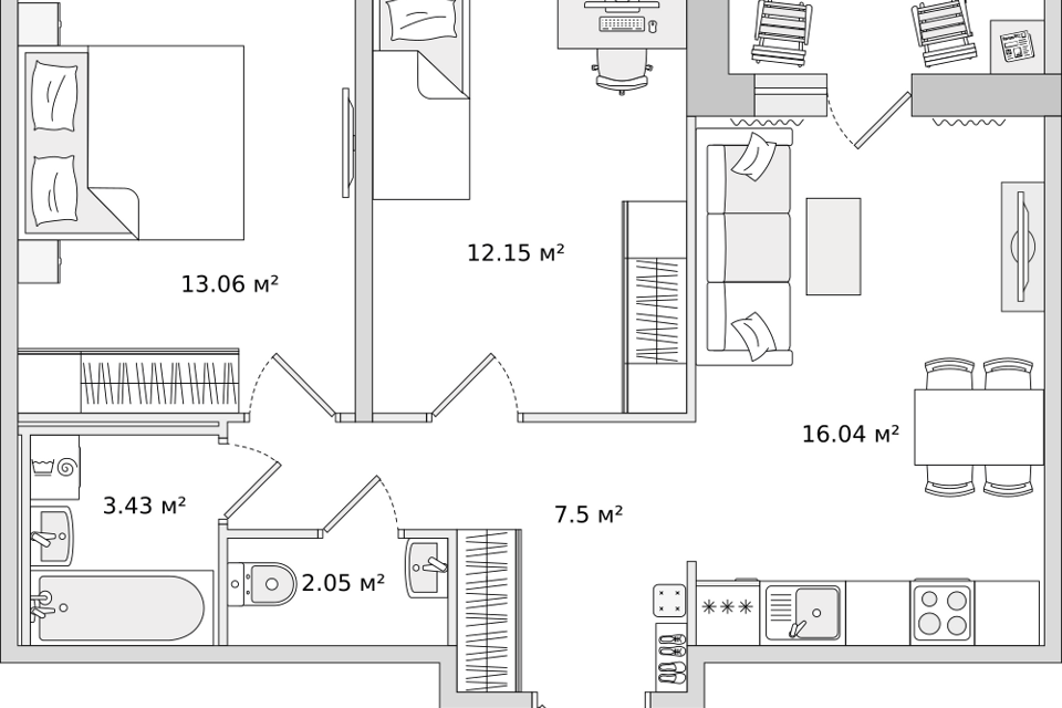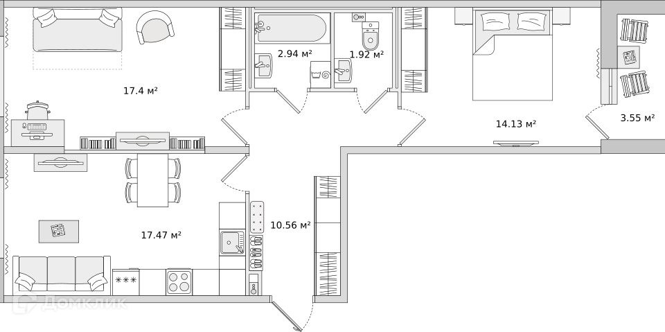 2-комн. кв., от 56.1 м², 13-14 этажи