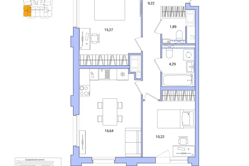 2-комн. кв., от 62.26 м², 3-12 этажи