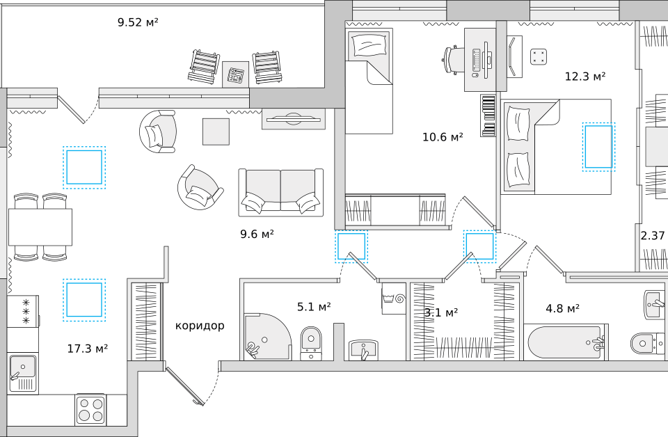 2-комн. кв., от 52.2 м², 2-13 этажи