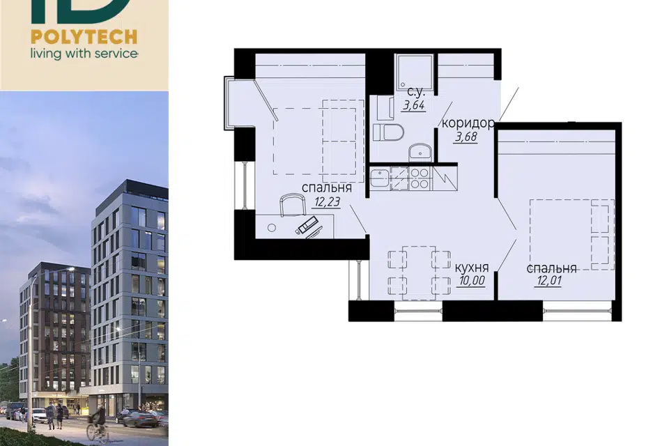 2-комн. кв., от 62.8 м², 1-12 этажи