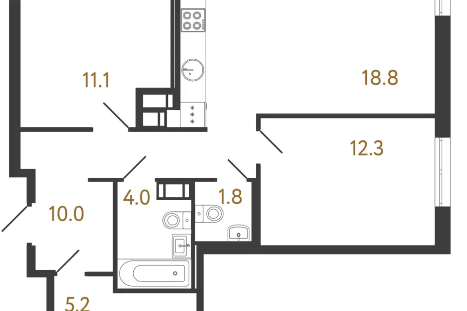 2-комн. кв., 61.8 м², 10/18 этаж