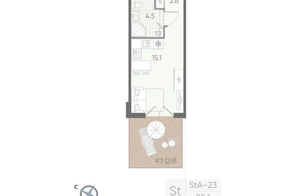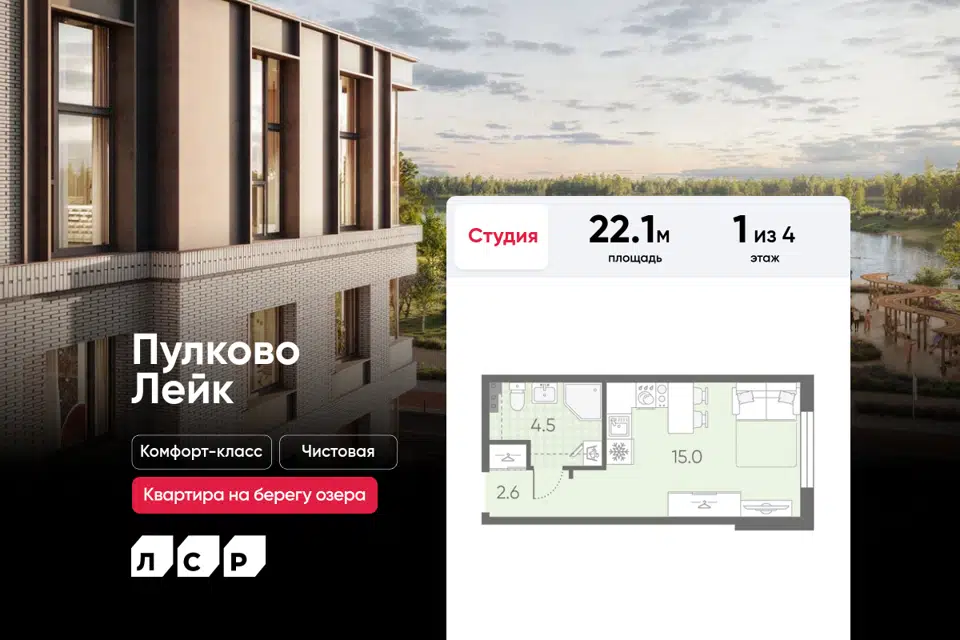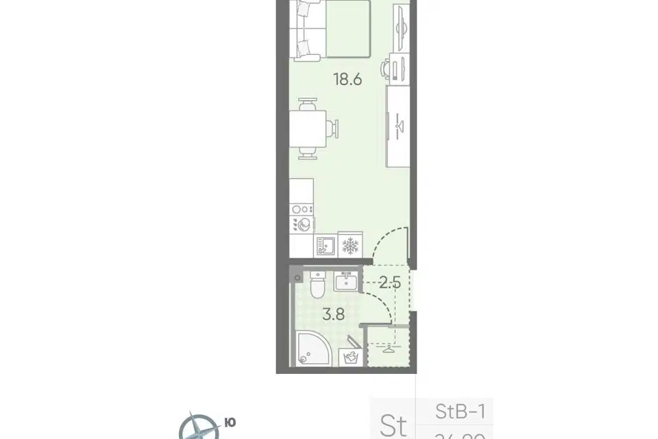 Студия, 28.6 м², 18/22 этаж