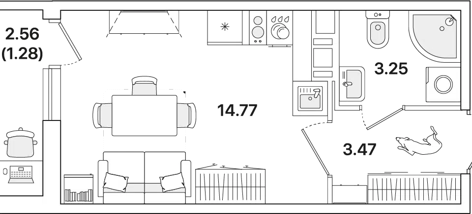 Студия, 22.77 м², 2/13 этаж