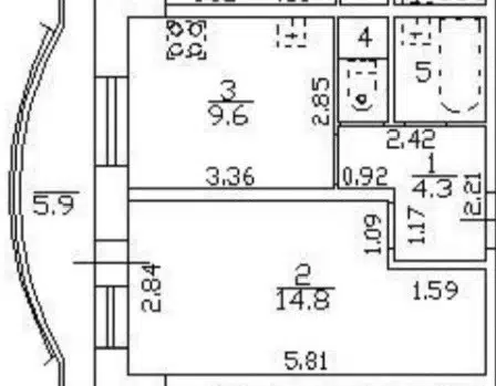 2-комн. кв., 45.7 м², 5/9 этаж