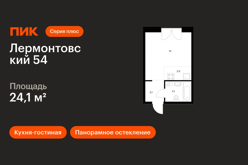 Студия, 24.1 м², 3/9 этаж