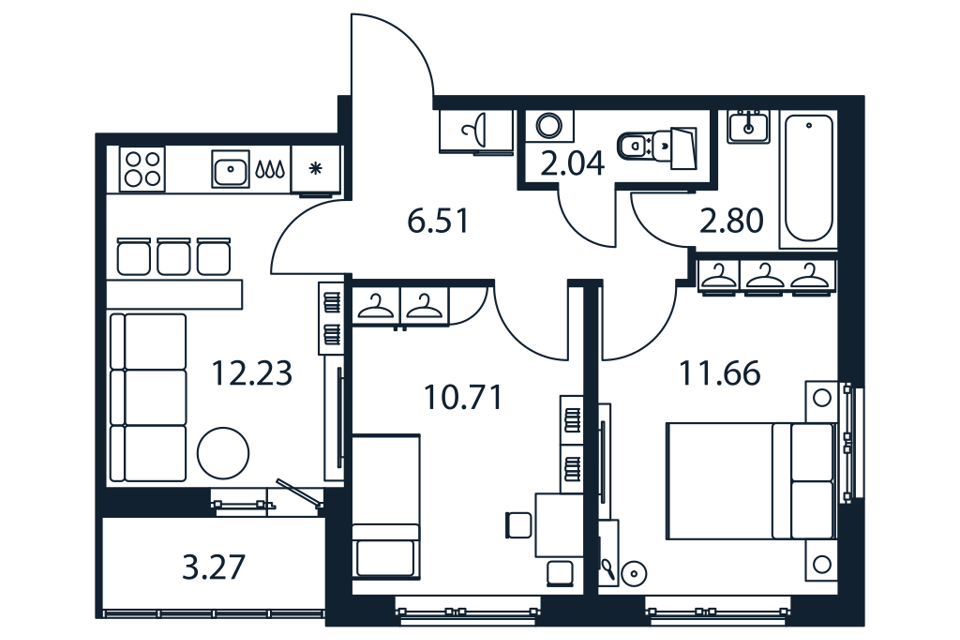 1-комн. кв., 47.6 м², 21/23 этаж