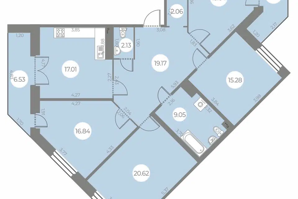 3-комн. кв., 79.1 м², 19/22 этаж