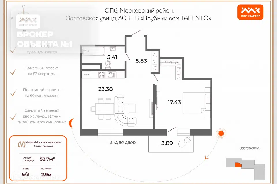 2-комн. кв., 52.72 м², 6/8 этаж