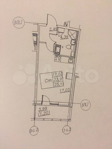 Студия, 25.1 м², 9/22 этаж