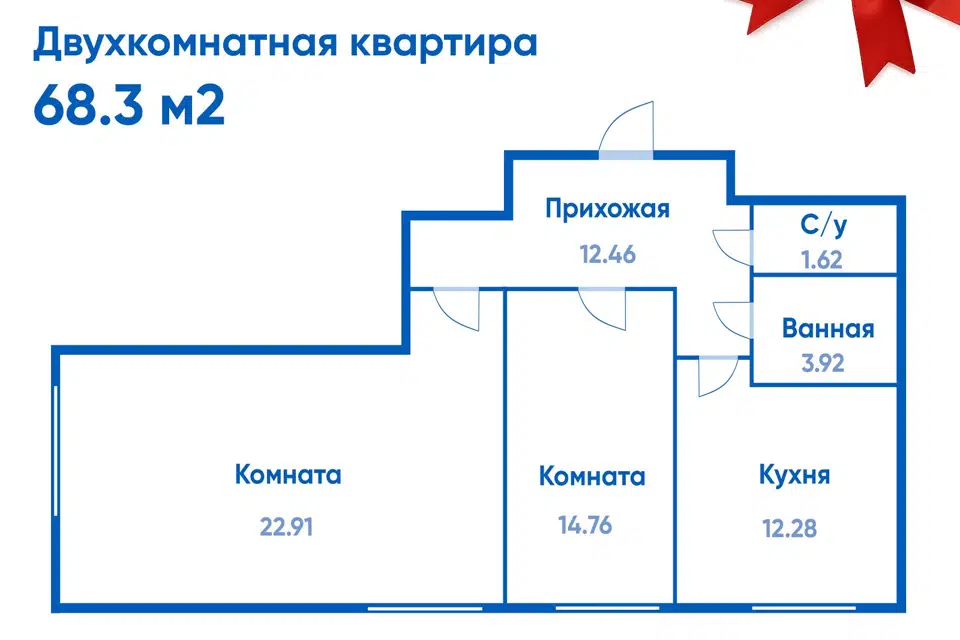 2-комн. кв., 68.3 м², 5/23 этаж