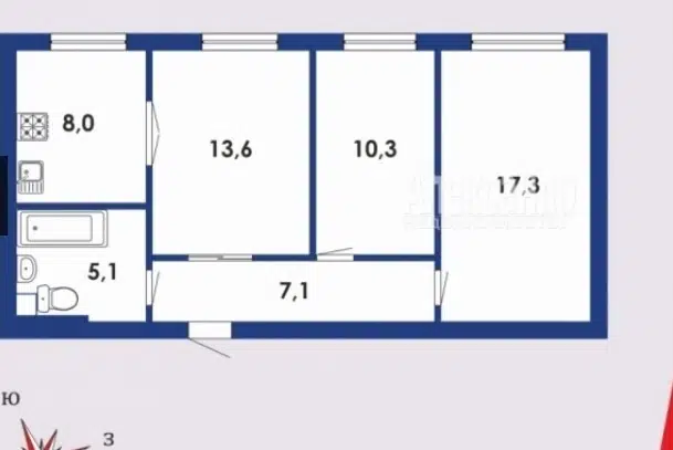 3-комн. кв., 67.8 м², 1/9 этаж