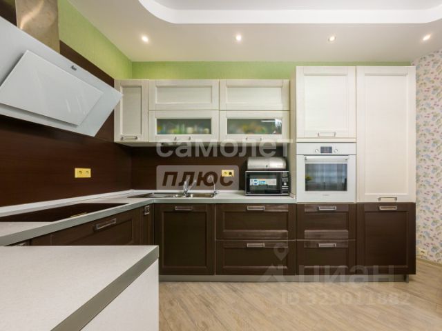 В квартире выполнен шикарный евроремонт с дорогой техникой и дизайнерскими элементами декора. Ремонт свежий от 2023 года. Кухня-гостиная полностью оборудована: духовой шкаф, индукционная панель, посудомойка, встроенный холодильник, вытяжка, смеситель. Техника фирм Bosсh и Teka. Много мест для хранения. Фасады кухни из натурального дерева.