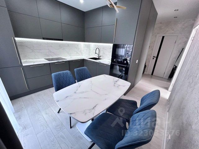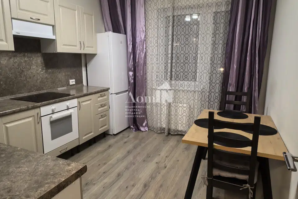 Кухня (ИКЕА) оборудована современной техникой и барной стойкой, что делает пространство удобным как для приготовления пищи, так и для общения с семьёй или друзьями.