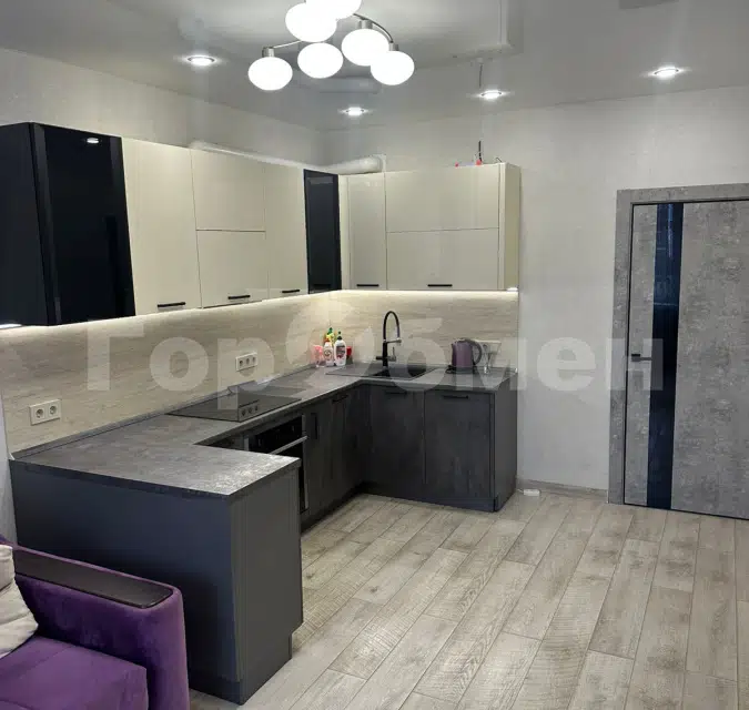 Сделан качественный евроремонт с элементами дизайнерского стиля, натяжные потолки со встроенным освещением.