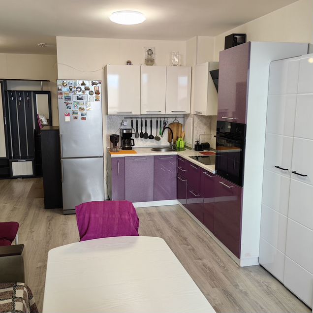 Продаю 2-кoмнатную квартиру (eвpo 3-кa) в современном жилом комплексе ЖК «Северный». Собственник. Большая кухня-гостинная и две раздельные спальни. В квартире ремонт от застройщика, все в рабочем состоянии, есть встроенная кухня, мебель и видеодомофон. Квартира продается без техники. Дом очень теплый, в зимнее время включал батареи на минимум, очень светлая квартира, окна выходят и во двор, и на улицу, поэтому в квартире всегда много естественного света. На этаже пять квартир, с соседями граничит только одна комната, сверху тех. Этаж, тихо и комфортно. Есть застекленный балкон со стороны улицы. Закрытый двор с крытыми беседками, детскими площадками и спортивной зоной. Прямо перед домом находится бесплатная большая парковка. Дом оснащён пассажирским и грузовым лифтами, что удобно для ежедневных нужд. В пешей доступности находится метро Девяткино 15-20 минут пешком по асфальтированной дорожке. Возле дома находятся 2 остановки общественного транспорта. Так же в пешей доступности от дома находится вся необходимая инфраструктура для комфортной жизни — новая школа Сош №5 с бассейном (сдана в 2022 году) примерно 300 метров от дома, через дорогу детский сад №5, множество продуктовых магазинов, есть кафе, салон красоты, аптека и стоматология в доме. Рядом с домом, 15 минут ходьбы, находится прекрасный лес и река Охта. Выезд на Kад — в 15 минутах транспортом или на своем авто. В 30 минутах транспортом находятся Максидом, Леруа, Мега Парнас, ОВІ, и Ашан, Северный Молл и Рrismа. Любители активного отдыха могут посещать трамплин в Кавголово, Охта-парк, Северный склон.