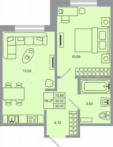 1-комн. кв., 32 м², 2/20 этаж