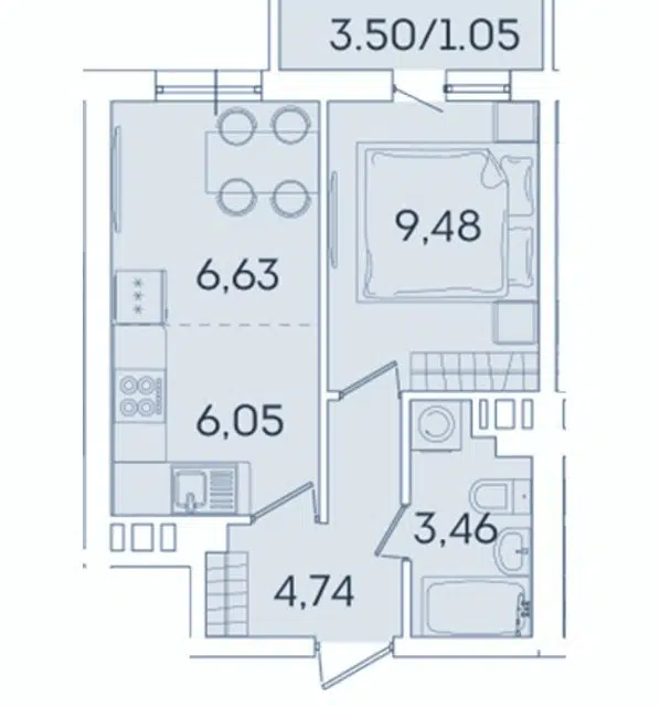 1-комн. кв., 25.9 м², 4/12 этаж
