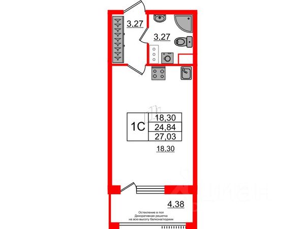 Студия, 24.8 м², 18/25 этаж