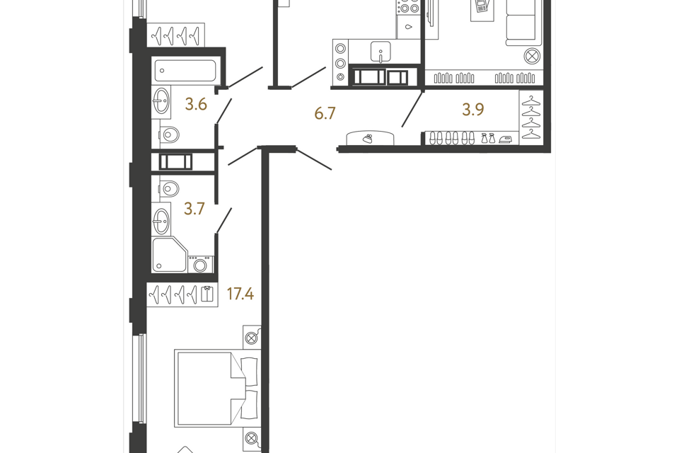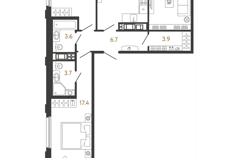 3-комн. кв., 73.4 м², 4/14 этаж