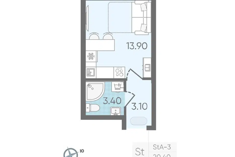 Студия, 20.2 м², 9/26 этаж