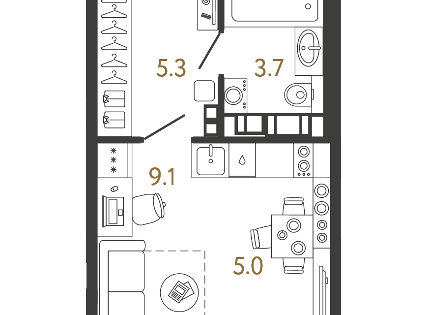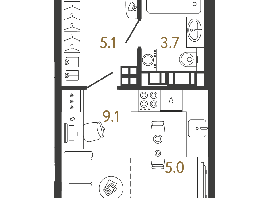 Студия, 22.9 м², 14/14 этаж