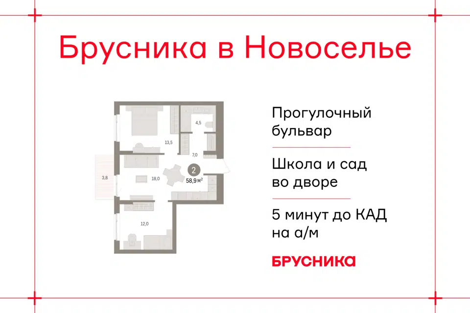 2-комн. кв., 58.85 м², 5/9 этаж