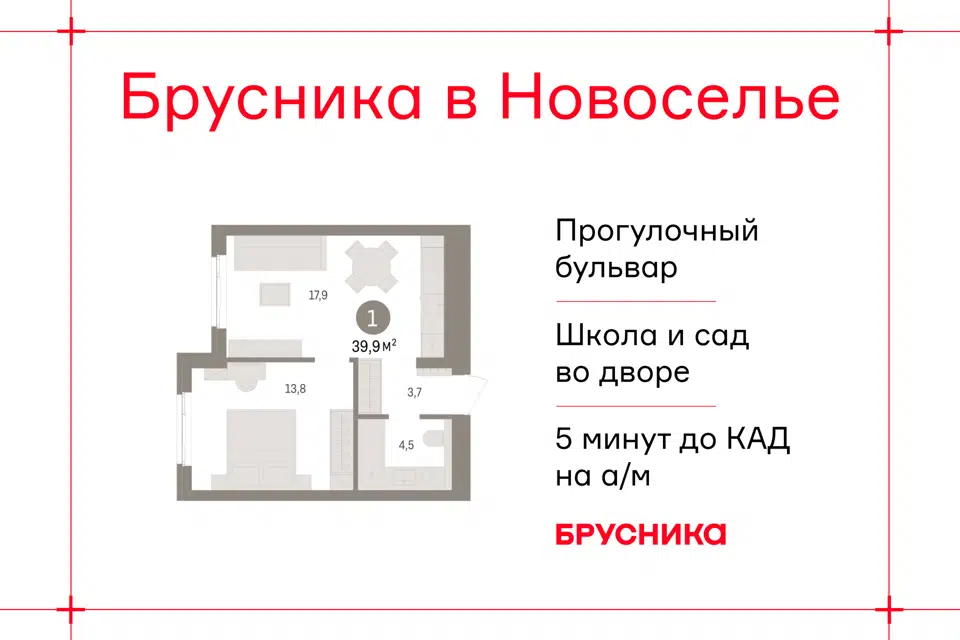 1-комн. кв., 39.87 м², 3/9 этаж
