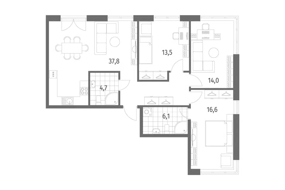 3-комн. кв., 92.7 м², 1/9 этаж