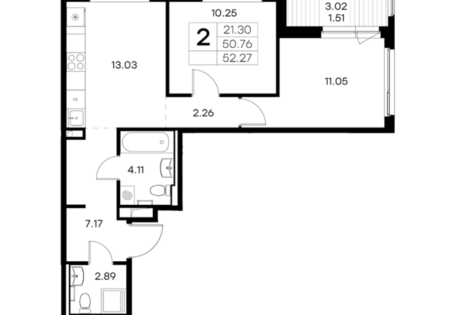 2-комн. кв., 52.27 м², 4/12 этаж