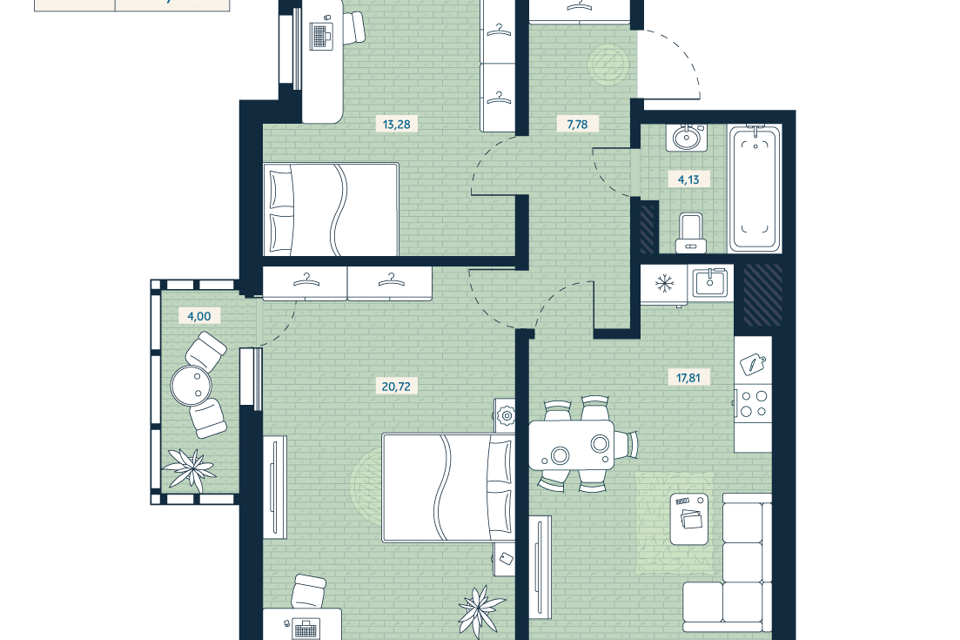 2-комн. кв., 68.3 м², 13/16 этаж