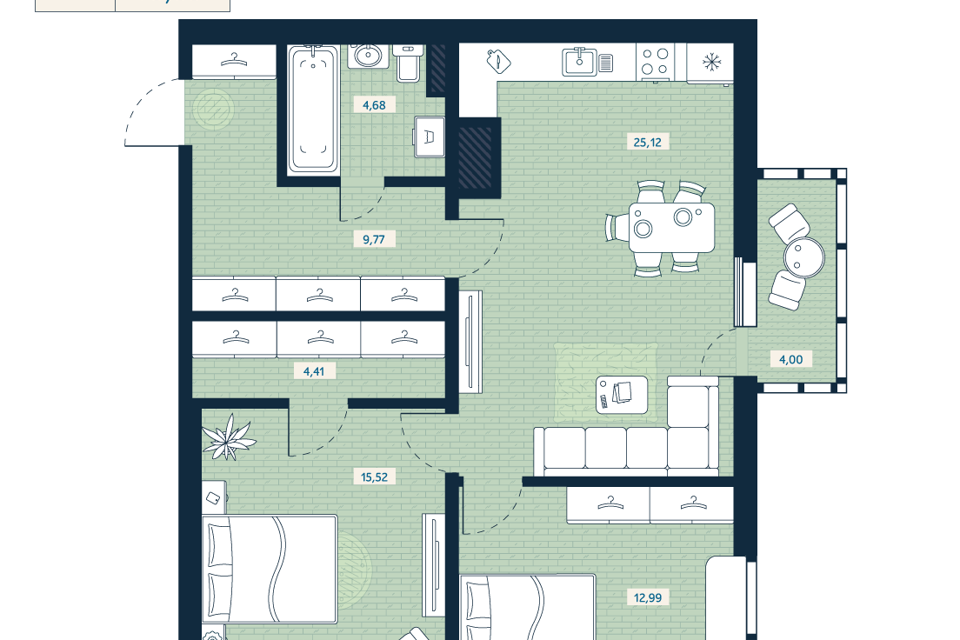 2-комн. кв., 67.7 м², 4/12 этаж