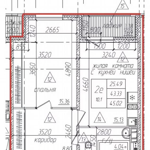 1-комн. кв., 43.7 м², 2/18 этаж