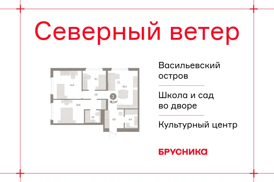 3-комн. кв., 78.14 м², 4/30 этаж