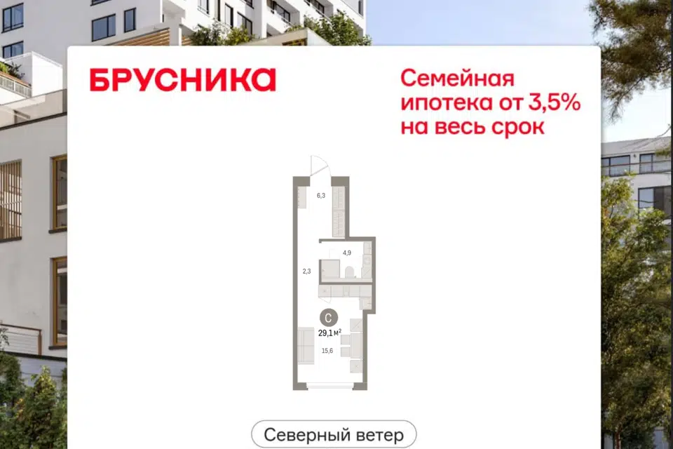 Студия, 29.09 м², 2/30 этаж