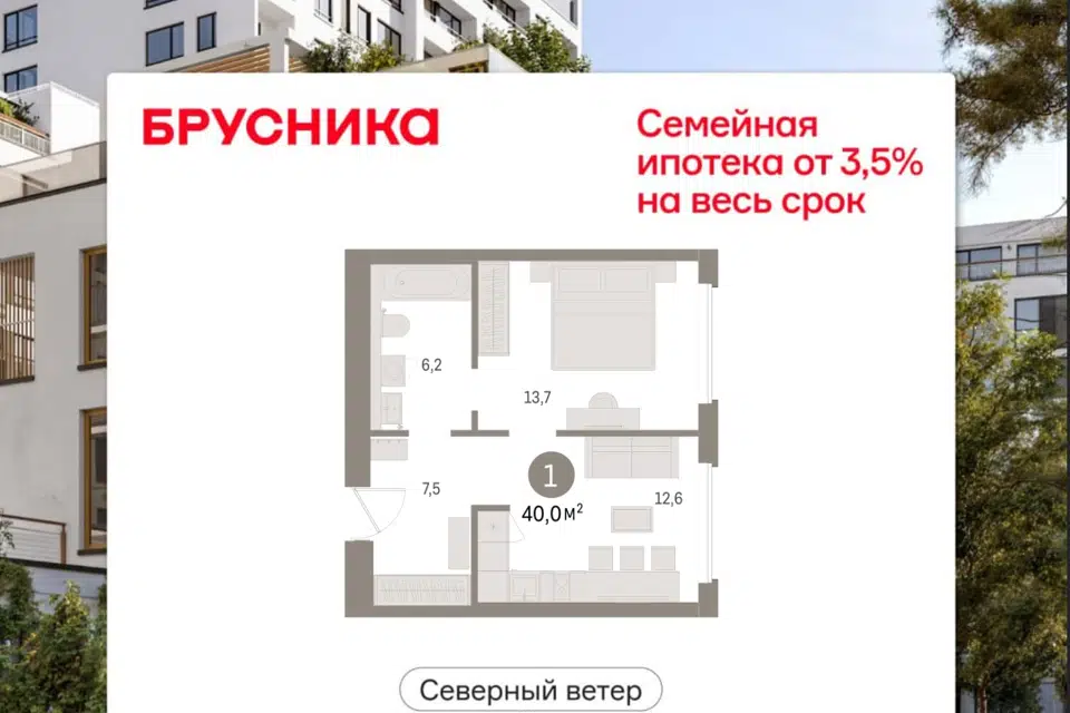 1-комн. кв., 40.6 м², 5/17 этаж