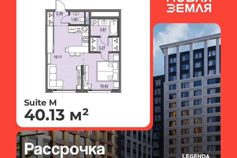 1-комн. кв., 41 м², 6/19 этаж