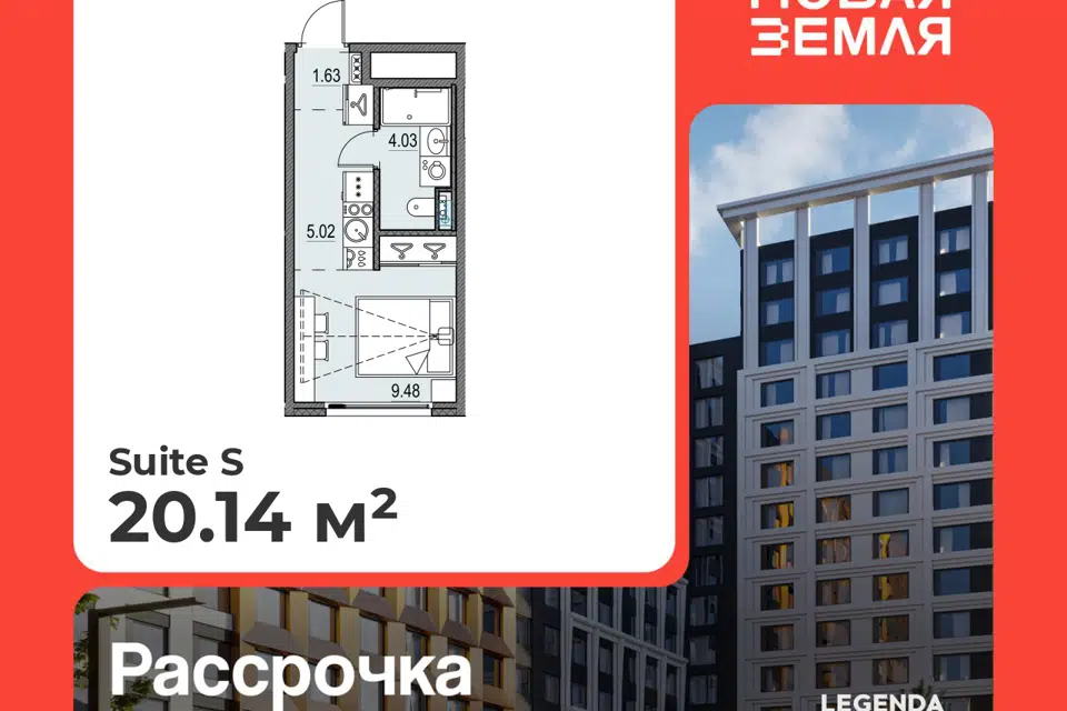 Студия, 20.14 м², 11/22 этаж