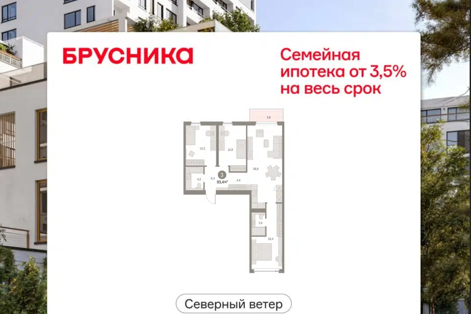 3-комн. кв., 93.35 м², 4/30 этаж