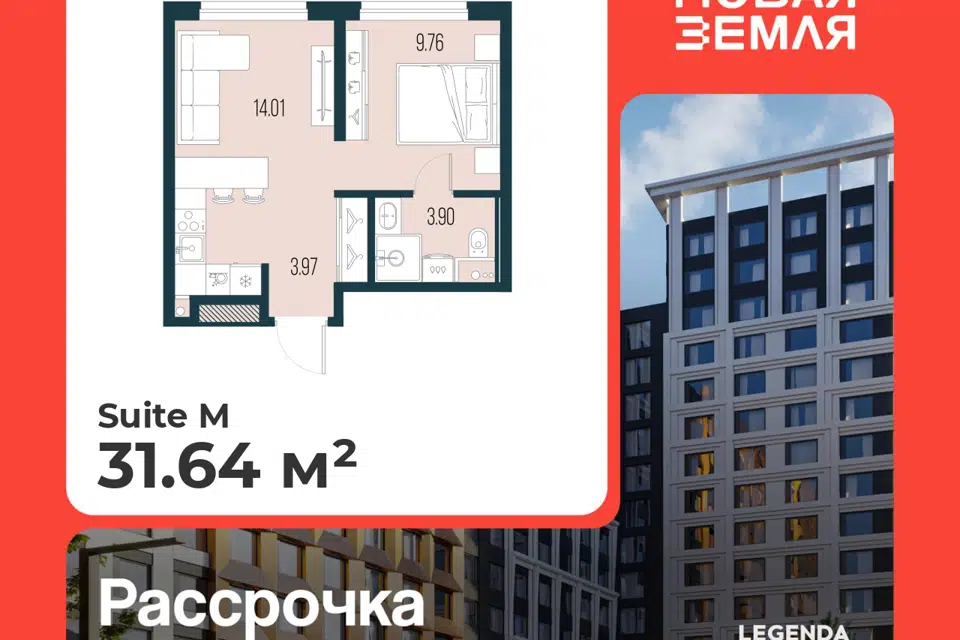 1-комн. кв., 31.64 м², 8/22 этаж