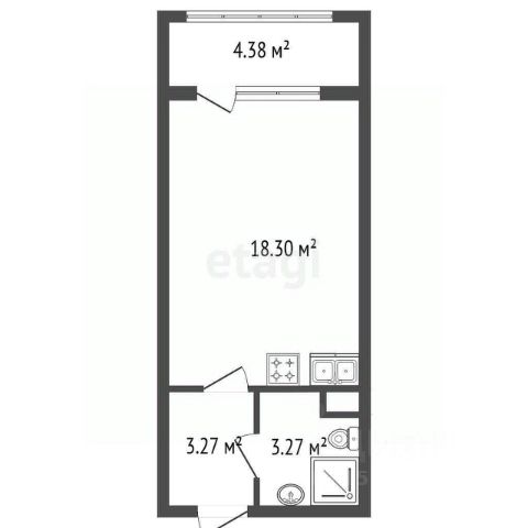 Студия, 24.6 м², 3/9 этаж