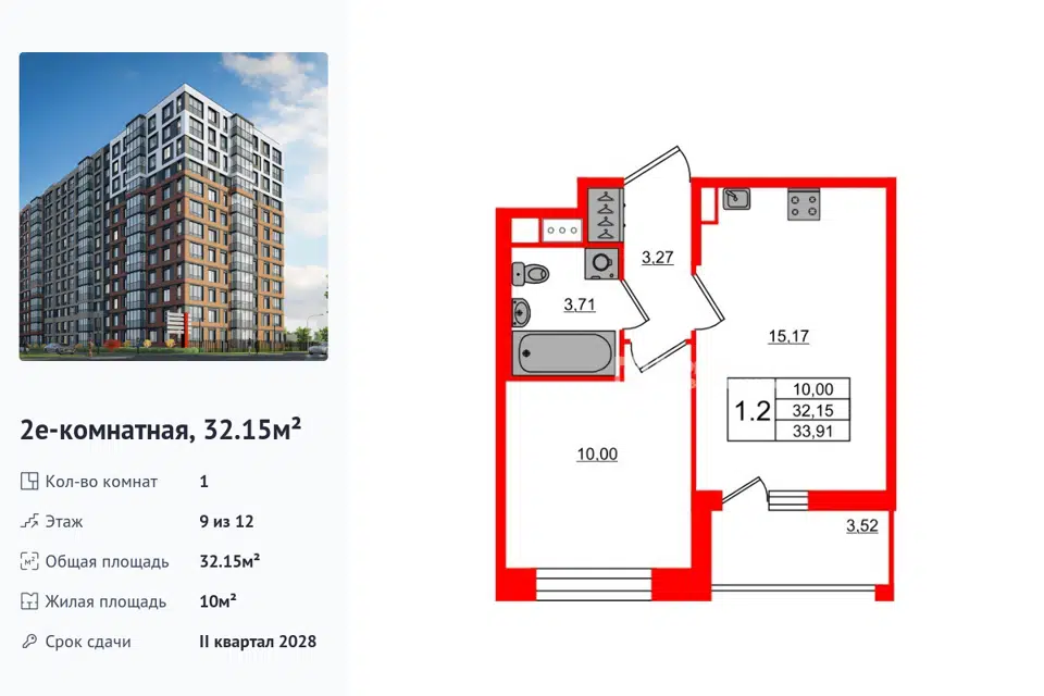 1-комн. кв., 32.15 м², 9/14 этаж