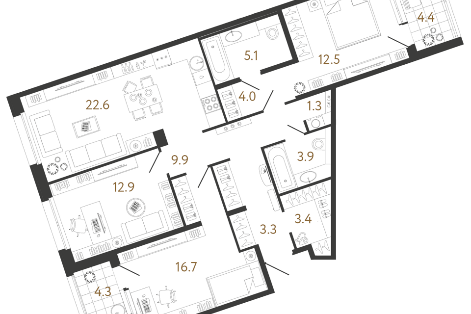 3-комн. кв., 95.6 м², 3/13 этаж