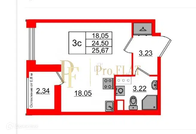 Студия, 24.61 м², 3/1 этаж