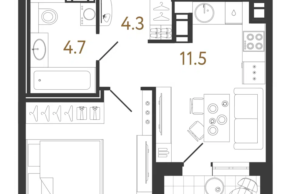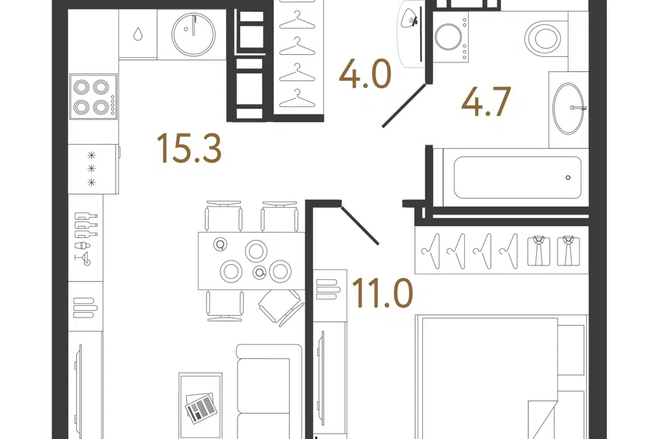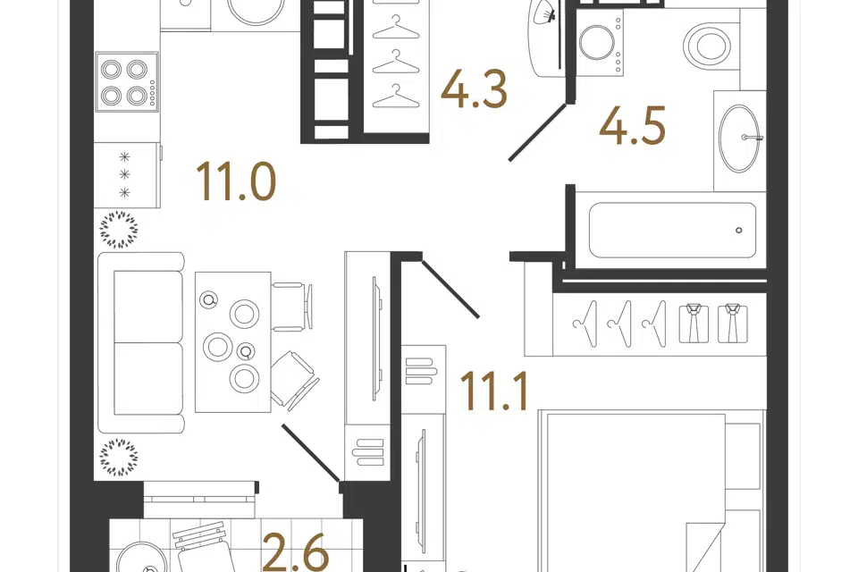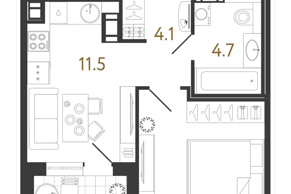 1-комн. кв., 40.5 м², 4/12 этаж