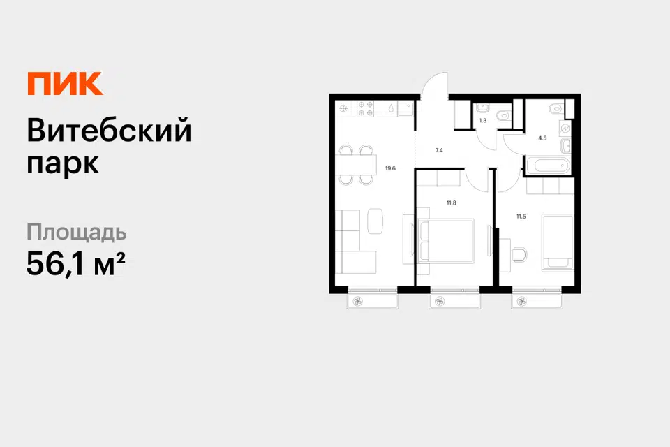 2-комн. кв., 56.1 м², 4/12 этаж
