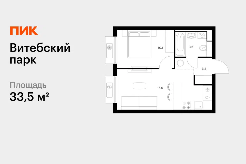 1-комн. кв., 33.5 м², 10/12 этаж